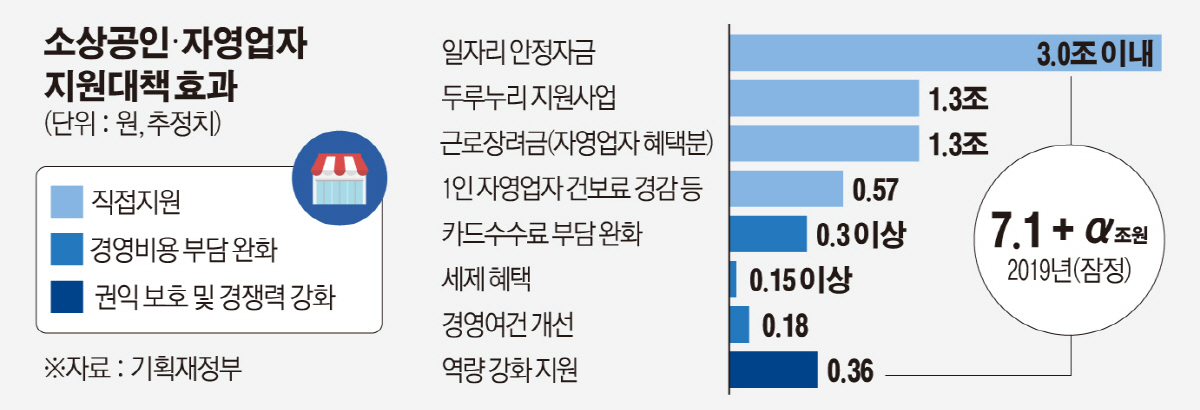 보고서는 “최저임금 인상이 인건비 부담으로 작용해 올해와 내년에 최대 7조 원이 넘는 정부의 지원이 이뤄질 예정”이라고 소개했다. 자영업자 지원이 가능한 정책 프로그램은 갖춰져 있다는 것이다. 다만 세부 계획에서 현실성 있는 내용으로 개편할 여지가 있다고 지적했다.
