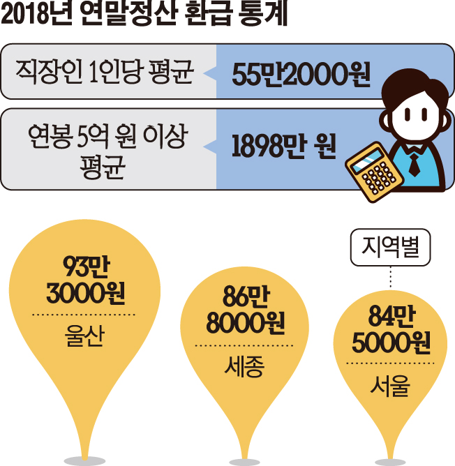이어 지역별로 1인당 평균 환급액을 보면 울산이 93만3000원으로 가장 많았고 세종(86만8000원), 서울(84만5000원) 등이 뒤를 이었다.