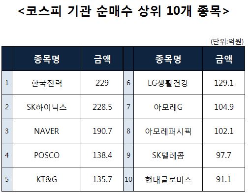 [코스피 기관 순매수 상위 10개 종목]
