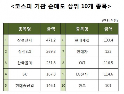 [코스피 기관 순매도 상위 10개 종목]