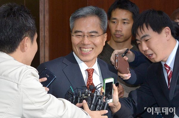 하영구 한국씨티은행장이 22일 오후 서울 중구 명동 KB금융지주 본점에서 열리는 KB금융지주 회장후보 심층면접에 참석하기 위해 로비로 들어서면서 취재진의 질문에 답하고 있다. KB금융지주 회장추천위원회는 이날 오전 9시부터 후보 4명에 대한 90분 심층면접을 실시, 회장추천위원들의 투표를 통해 최종 후보 1명을 선출할 예정이다. 최유진 기자 strongman55@