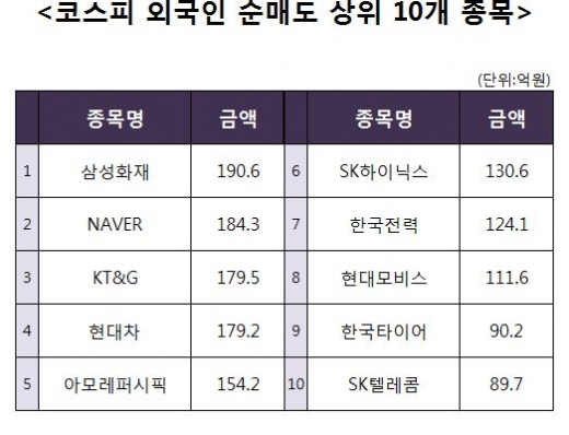 [코스피 기관 순매도 상위 10개 종목]