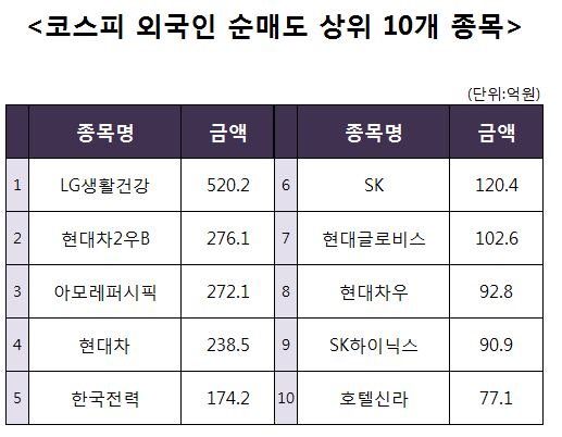 [코스피 외국인 순매도 상위 10개 종목]