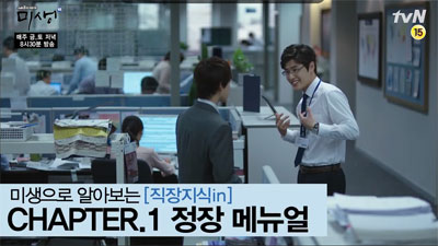요즘 직장인들의 격한 공감을 이끌어내며 최고 시청률 4.9%를 기록하고 있는 tvN 드라마 '미생'이 페이스북 페이지를 통해 공개한 '직장인 정장 메뉴얼' 영상이다. 극 중 주인공인 장그래(임시완)가 입은 정장을 토대로 몸에 맞는 남성 정장을 고르는 방법이 자세하게 담겨있다. 남성 직장인들의 슈트핏, 미생의 장그래처럼 완성해보면 어떨까?