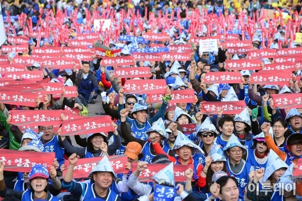 전국공무원노동조합 등 50여개 단체가 참여한 ‘공적연금 개악 저지를 위한 공동투쟁본부’가 1일 오후 서울 여의도공원에서 ‘100만 공무원·교원 총궐기 대회’를 열었다. 궐기대회에 참가한 공무원 및 교원 노조원들이 공적연금 개악 저지를 요구하며 구호를 외치고 있다. 노진환 기자 myfixer@