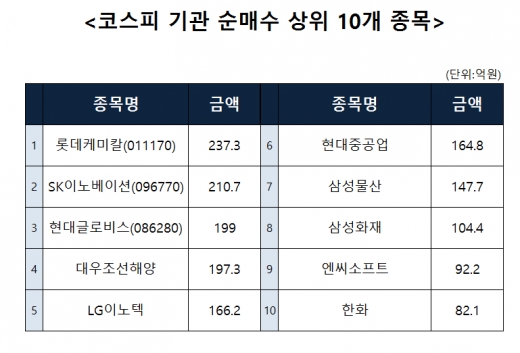 [코스피 기관 순매수 상위 10개 종목]