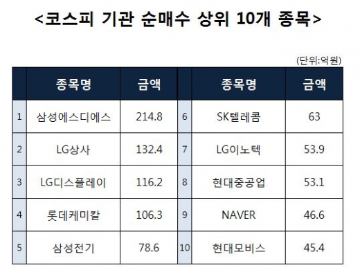 [코스피 기관 순매수 상위 10개 종목]
