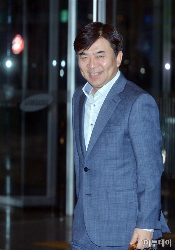 김현석 신임 삼성전자 CE부문 영상디스플레이사업부장 사장이 3일 오전 서울 서초동 삼성전자 서초사옥에서 그룹 인사 뒤 처음 열린 사장단회의에 참석하고 있다. 신태현 기자 holjjak@