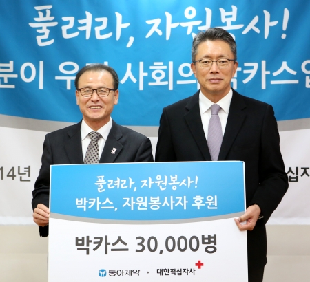 이 자리에는 동아제약 신동욱 사장과 대한적십자사 강호권 사무총장 등 양사 관계자들이 참석했다.