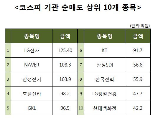 [코스피 기관 순매도 상위 10개 종목]