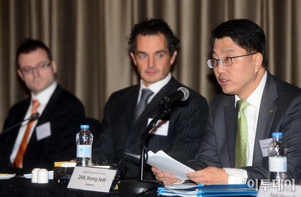 진웅섭 금융감독원장이 11일 오전 여의도 콘래드호텔에서 열린 외국계 금융회사 CEO 간담회에 참석해 모두발언을 하고 있다. 노진환 기자 myfixer@