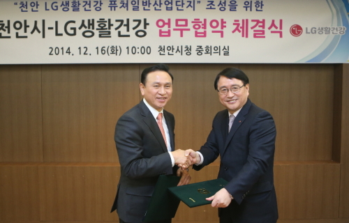 이번 업무협약은 LG생활건강이 화장품 사업의 글로벌화와 미래성장 준비를 위해 천안시 동남구 구룡동(풍세면 미죽리) 일대에 조성을 위해 총사업비 1386억원을 투자, 2017년까지 총15만평 규 모의 미래성장기지를 준공할 계획에 따라 진행됐다.