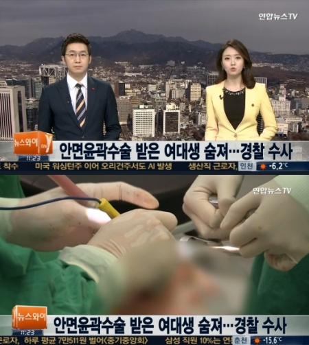 안면육곽수술을 받은 여대생이 숨지는 사건이 발생했다.
