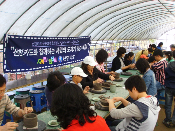 이 행사는 신한카드의 우수 고객 우대 서비스인 탑스클럽 고객 중 초등학교 자녀가 있는 고객을 대상으로 진행됐으며, 해강 도자기 미술관 견학, 도자기 빚기, 고구마 캐기 체험 등의 코너로 구성됐다.
