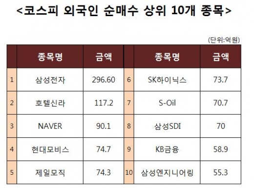 [코스피 외국인 순매수 상위 10개 종목]