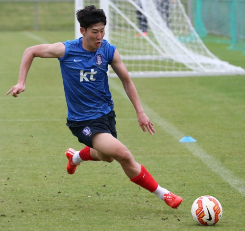 한국 축구대표팀의 간판스타 손흥민이 2일 호주 시드니 매쿼리대학교 스포츠필드에서 훈련하고 있다. 우리 대표팀은 이달 호주에서 열리는 2015 아시안컵에 출전한다.