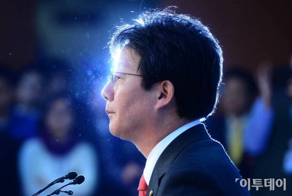 유승민 새누리당 의원이 27일 오전 여의도 국회 정론관에서 기자회견을 갖고 당내 원내대표 경선 출마 선언을 하고 있다. 노진환 기자 myfixer@