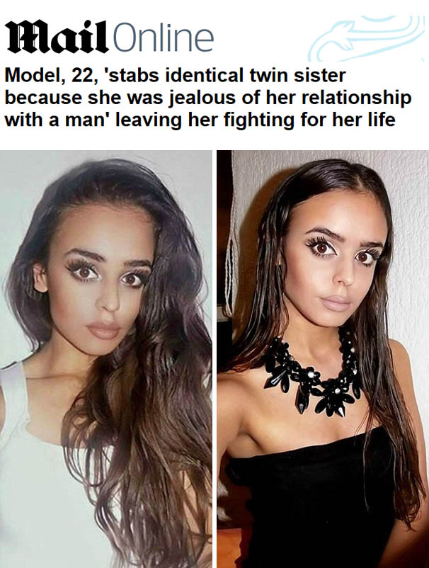 2일(현지시간) 영국 데일리메일은 한 남성을 두고 쌍둥이 자매가 칼부림을 벌인 사건을 보도했다. 보도에 따르면 지난 31일 크로아티아 서북부 리예카에서 사라 그로크비치(22)라는 여성 모델이 자신의 쌍둥이 동생 다야나를 칼로 찔러 살인 미수 혐의로 체포됐다. 가슴과 허벅지에 자상을 입은 다야나는 인근 병원으로 이송돼 생명에 지장은 없는 것으로 알려졌다. 경찰 조사 결과, 사라가 자신이 좋아하던 남성이 다야나와 만나는 것을 질투해 일어난 것으로 밝혀졌다.