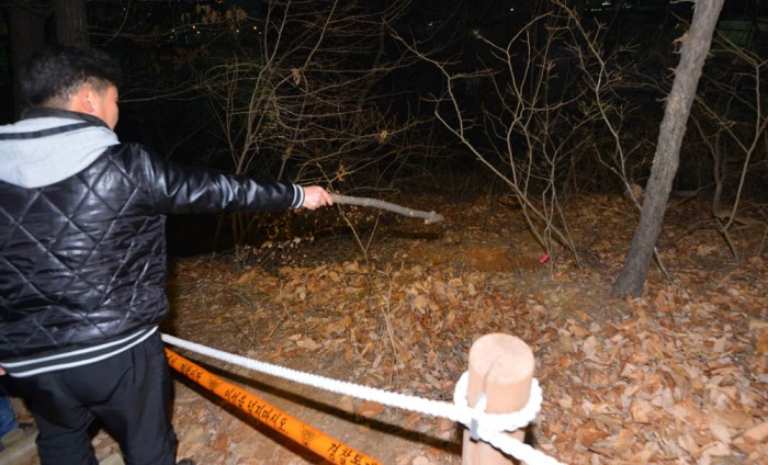 4일 경기 수원시 우만동의 한 스포츠센터 뒤편 야산에서 한지에 쌓인 유골이 발견돼 경찰이 수사에 나섰다. 경찰은 묘 이장 시 볼 수 있는 유골형태로 추정, 정확한 사인 규명을 위해 국립과학수사연구원에 보내 감정할 계획이다. 한편 당초 확보했던 우만 3단지 내 CCTV는 확인 결과 고장 난 상태로 알려졌다. 사진은 유골이 발견된 현장.