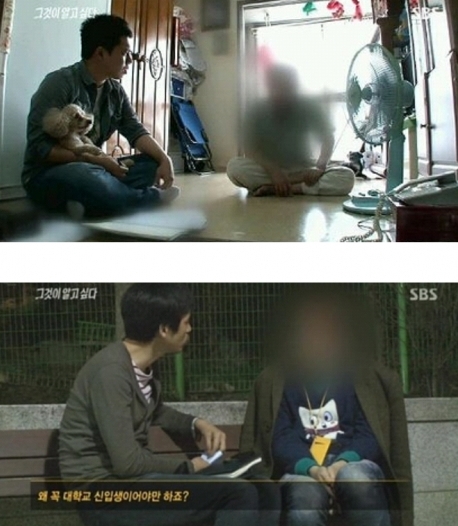 두번째 사진도 마찬가지다. 한 대학생과 인터뷰하는 이 장면에선 PD가 겉옷을 벗어서 취재원을 덮어줬다.