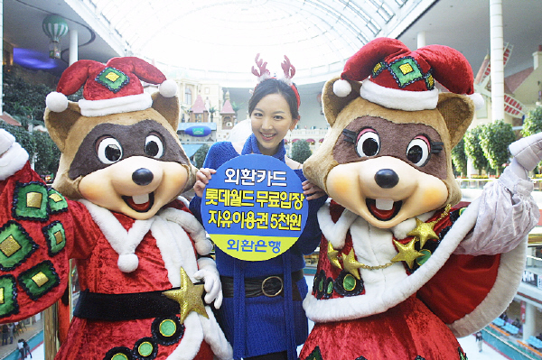 외환은행은 모든 카드고객을 대상으로 25일부터 연말까지 본인에 한해 롯데월드 무료입장과 자유이용권(정상가 3만원)을 5000원에 구입할 수 있는 ‘롯데월드 크리스마스 대축제’를 실시한다.