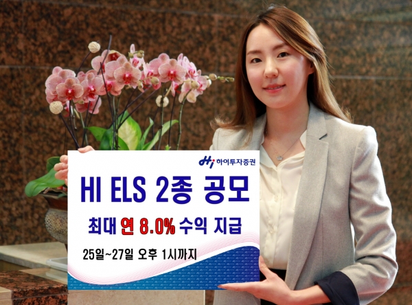 하이투자증권은 오는 25일부터 27일 오후 1시까지 ELS 2종을 총 100억원 규모로 공모한다고 24일 밝혔다.