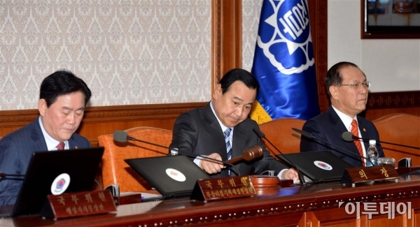 이완구 국무총리가 3일 서울 세종로 정부서울청사에서 열린 국무회의에 참석해 의사봉을 두드리고 있다. 신태현 기자 holjjak@
