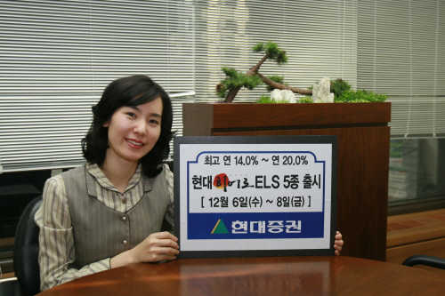 현대증권은 오는 6일부터 8일까지 원금보장형 ELS 상품 3종 및 스텝다운형 ELS상품 2종을 공모한다고 5일 밝혔다. 청약금액은 최저100만원부터 100만원 단위로 가입할 수 있다.
