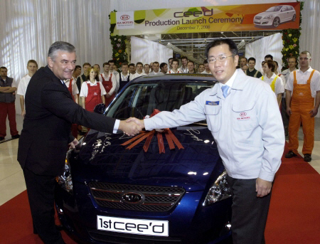 정 사장은 이어 "유럽소비자들을 만족시킬 수 있는 최고 품질을 갖춘 제품 생산이 가장 필수적이다"며 "오늘 기아 슬로바키아 공장 임직원들의 최고 품질에 대한 결의를 바탕으로 씨드가 세계적 품질을 갖춘 글로벌 명차가 되길 기대한다"고 덧붙였다.
