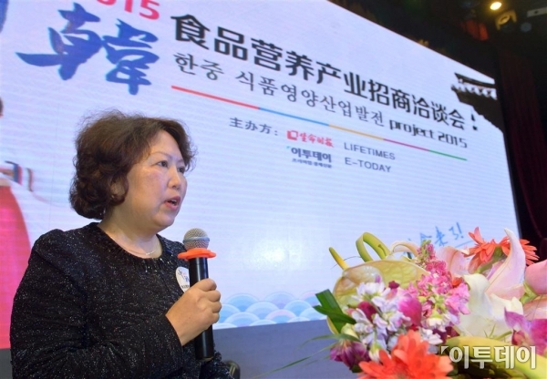 양웨이신 중국영양학회 이사장이 1일 중국 베이징 해공관에서 열린 ‘한ㆍ중 식품영양 산업발전 프로젝트’에 참석해 축사를 하고있다. 중국 인민일보 산하 생명시보와 이투데이가 공동 개최하는 ‘한ㆍ중 식품영양 산업발전 프로젝트’는 이날부터 오는 2일까지 열리며 한ㆍ중 정부관계자, 식품산업 관계자, 한ㆍ중 FTA 협회, 투자자 등이 참여해 중국 식품 시장의 진출방안을 모색하고 비즈니스 매칭을 시도하는 대규모 국제 포럼이다. 베이징=신태현 기자 holjjak@