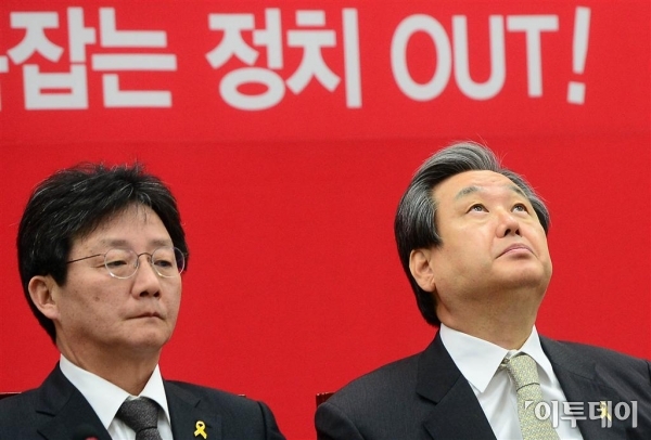 김무성 새누리당 대표와 유승민 원내대표가 13일 오전 여의도 국회 대표최고위원실에서 열린 최고위원회의에 참석해 잠시 생각에 잠겨있다. 노진환 기자 myfixer@
