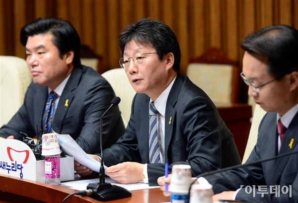 유승민 새누리당 원내대표가 14일 오전 여의도 국회에서 열린 원내대책회의에 참석해 모두발언을 하고 있다. 노진환 기자 myfixer@