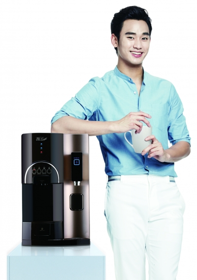 ▲청호나이스 휘카페 티니와 전속모델 배우 김수현.(사진=청호나이스)