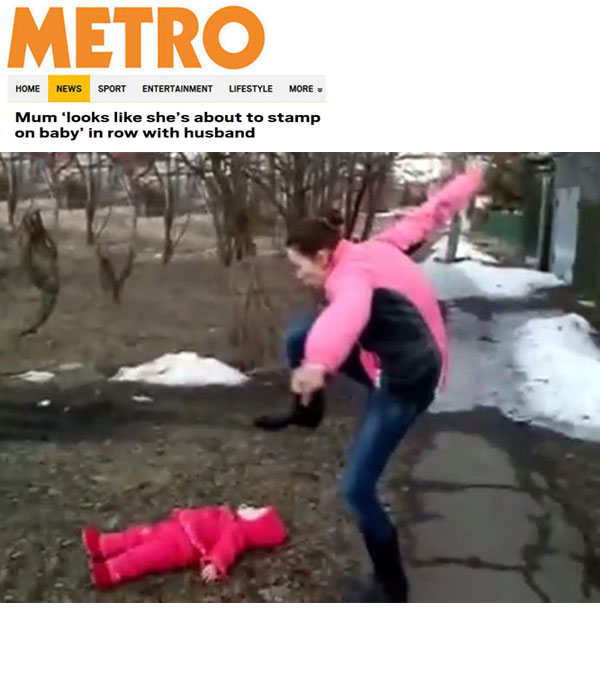 화가 난 엄마가 누워 있는 아기를 밟으려하는 장면이 공개돼 논란이 일고 있다고 19일(현지시간) 메트로가 보도했다. 러시아 모스크바 근교 노긴 스크의 공원에서 한 부부가 아이를 데리고 나왔다. 목격자에 따르면 남성의 이야기를 듣던 중 여성이 흥분해 씩씩대며 아기를 바닥에 던지다시피 내려놓았다. 이어 여성은 남자에게 달려가면서 화를 참지 못했는지 누워 있는 아기를 밟으려 하는 자세를 취했다. 다행히도 여성은 아기 옆으로 발을 내려놓았지만, 현지 경찰은 이 모습이 찍힌 영상을 토대로 여성을 조사중이다.