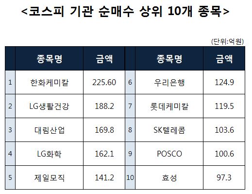 [코스피 기관 순매수 상위 10개 종목]