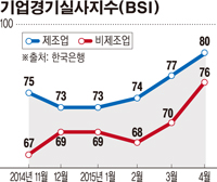 제조업체들의 체감경기가 석 달째 개선 흐름을 이어갔습니다. 정부의 경기부양책, 한국은행의 기준금리 인하 등의 효과가 가시화되고 있다는 분석입니다. 그러나 계절 효과를 제거하면 전달과 동일했고, 세월호 참사 이전 수준도 아직 회복하지 못했습니다.