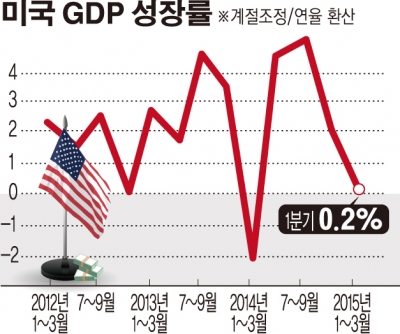 미국 상무부는 29일(현지시간) 지난 1분기 국내총생산(GDP) 성장률 예비치가 연율 0.2%를 기록했다고 밝혔습니다. 이는 전문가들의 전망치인 1%와 지난해 4분기 2.2%에서 크게 둔화한 것입니다.