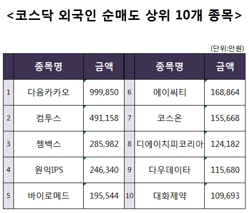 [코스닥 외국인 순매도 상위 10개 종목]