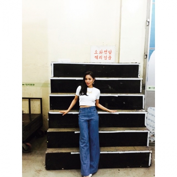 공개된 사진 속 조정민은 흰색 반팔 티셔츠에 청바지를 입고 있는 모습이다. 특히 조정민의 미모와 함께 긴 다리가 시선을 사로잡는다.