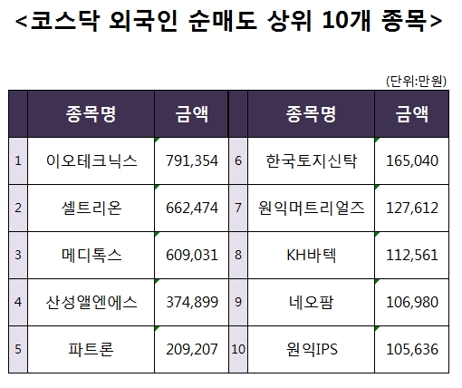 15일 코스닥 외국인 순매도 상위 10개 종목