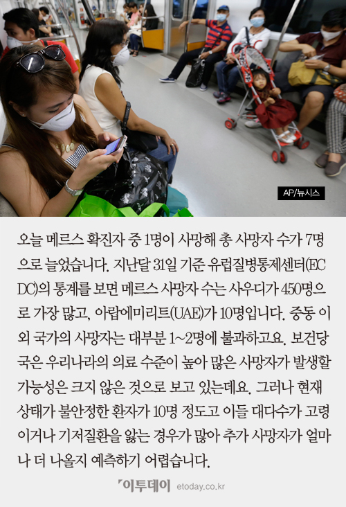 [짤막카드] 메르스 사망자 7명, 상태 불안정 10명 … 이러다 사망자도 세계 2위 될라