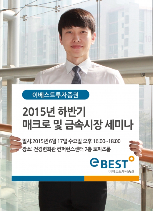 이베스트투자증권은 오는 17일 오후 4시부터 6시까지 서울 여의도 전경련회관 컨퍼런스센터에서 ‘2015년 하반기 매크로 및 금속시장 전망 세미나’를 개최한다고 15일 밝혔다.