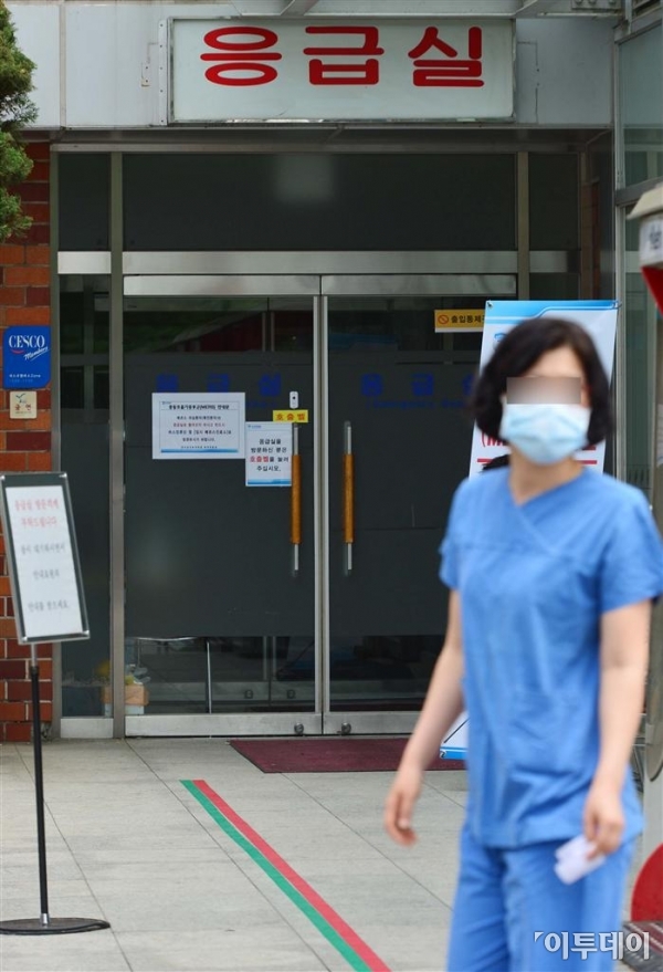중동호흡기증후군(메르스) 확산 우려로 서울 원자력병원이 응급실을 폐쇄한 15일 서울 공릉동 원자력병원 응급실이 굳게 닫힌 채 불이 꺼져있다. 서울 원자력병원은 삼성서울병원에서 치료를 받았던 환자가 지난 14일 응급실에 찾아와 해당 환자를 바로 격리실로 옮긴 뒤 방역강화를 위해 응급실을 폐쇄했으며 운영 재개 시기는 확정되지 않았다고 밝혔다. 신태현 기자 holjjak@