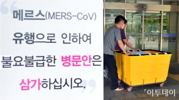서울특별시보라매병원이 중동호흡기증후군(메르스) 확산 우려로 응급신을 임시 폐쇄한 15일 서울 신대방동 보라매병원에서 관계자들이 분주히 움직이고 있다. 보라매병원은 메르스 확진자(137번 환자)가 응급실을 방문한 적이 있어 지난 14일부터 응급실을 임시 폐쇄하고 내부를 소독하고 있다. 신태현 기자 holjjak@