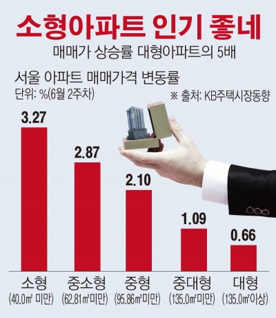 올해 서울 소형 아파트 매매가격 상승폭이 대형 아파트보다 5배 더 높은 것으로 나타났습니다.