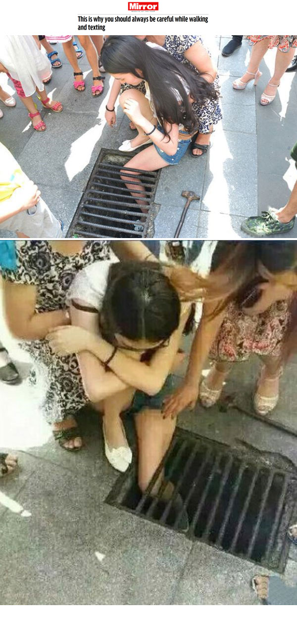 중국 한 거리에서 한 여성이 배수관 하수구에 다리를 끼는 사고를 당했다고 19일(현지시간) 미러가 보도했다. 최근 중국 쓰촨성 몐양의 한 거리에서 스마트폰으로 채팅을 하면서 걷던 여성이 빗물 배수관 덮개에 다리를 끼였고 주위에 있던 시민들이 여성의 다리를 빼내려 했지만 역부족이었다. 결국 신고를 받고 현장에 도착한 구조대는 덮개를 절단해 사고 45분만에 여성의 다리를 무사히 빼냈다.