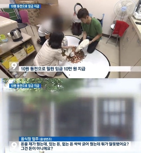 박양은 그러나 받은 임금을 금융기관에 가 지폐로 바꿔야 했다. 업주가 준 것은 10원짜리 동전 만 개. 노동부에 진정을 넣은 것에 뿔난 업주가 32만원의 임금 중 10만원을 모두 10원짜리 동전 1만개로 준 것이다.