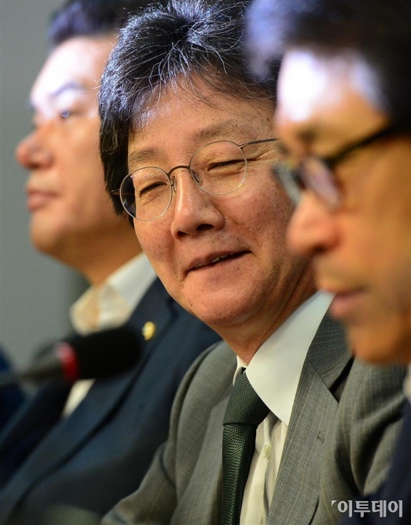 유승민 새누리당 원내대표가 30일 오전 여의도 국회 의원회관 세미나실에서 열린 원내대책회의에 참석해 의원들과 이야기를 나누며 미소를 보이고 있다. 노진환 기자 myfixer@