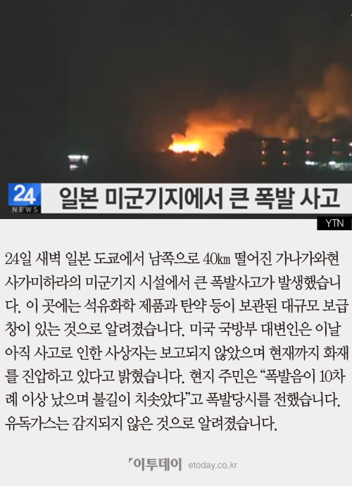 [짤막카드] 일본 내 미군기지서 폭발사고... 석유제품ㆍ탄약 등 보관창