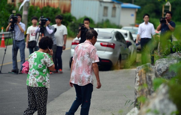 북한의 비무장지대(DMZ) 목함지뢰 도발 및 서부전선 포격 도발 등으로 시작된 남북고위급회담이 사흘째 강행군을 이어 나가고 있지만 좀처럼 합의점을 찾지 못하고 있는 24일 경기 연천 중면 민방공 대피소로 주민들이 들어가고 있다. 신태현 기자 holjjak@